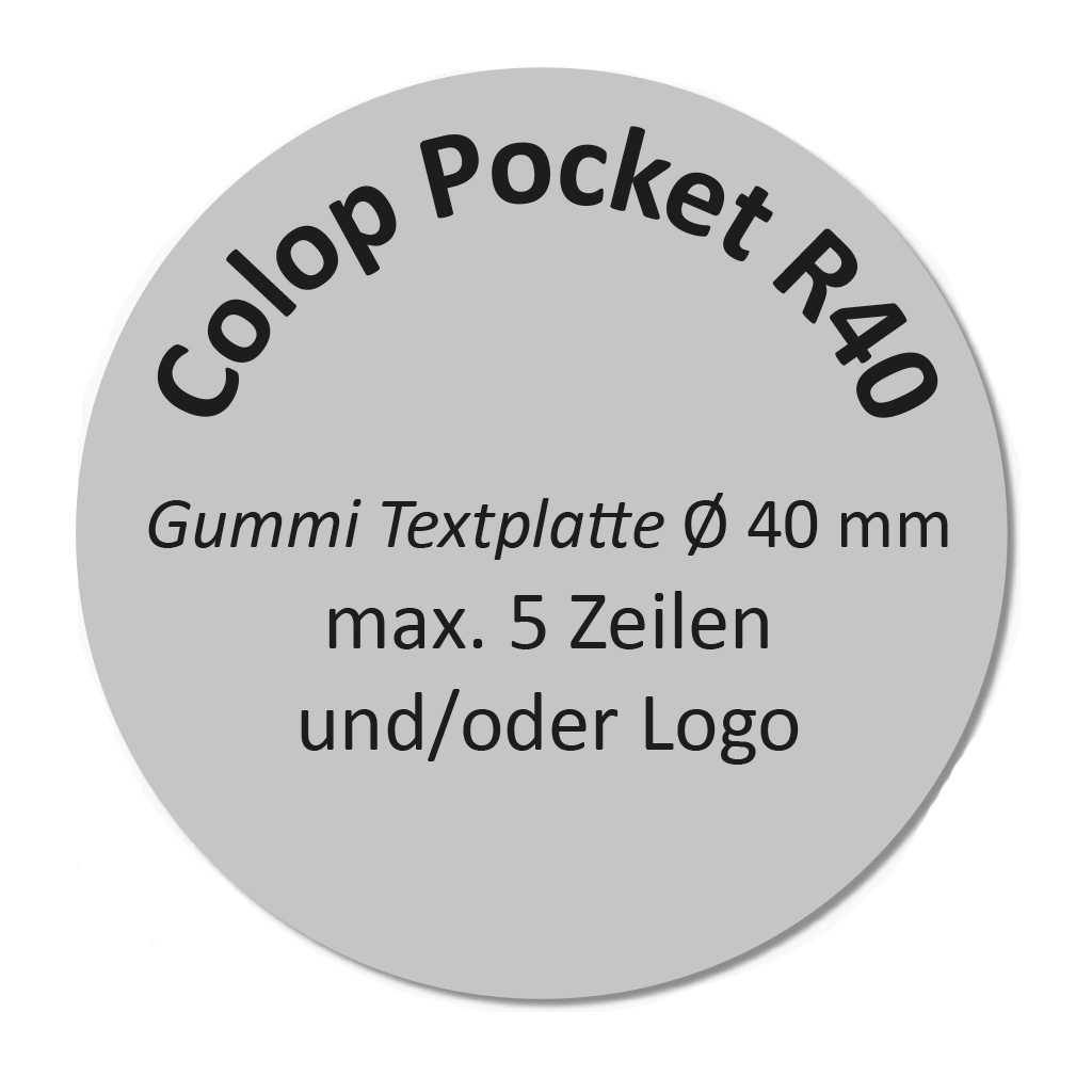 Textplatte für Colop Pocket Stamp R40 mit max. Abdruckgröße Ø 40 mm.