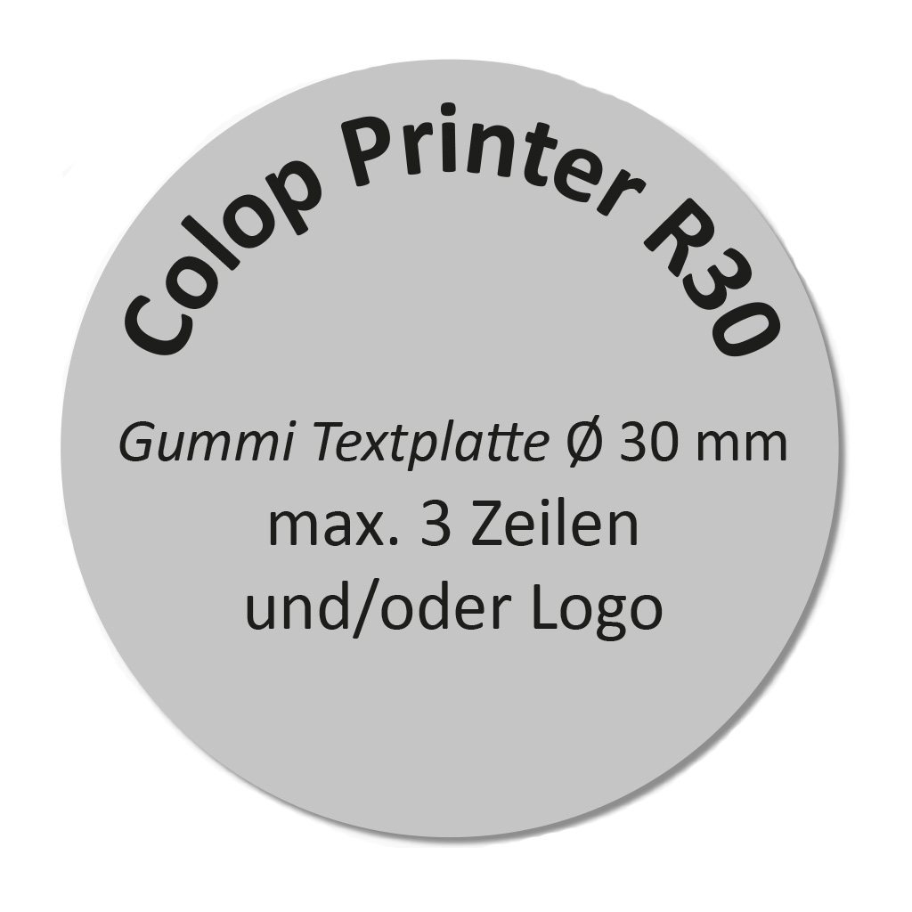 Bestellen Sie einfach eine neue Stempelplatte für Ihren Colop Printer R30. Sie können sie online selbst gestalten oder Ihren eigenen Entwurf hochladen.