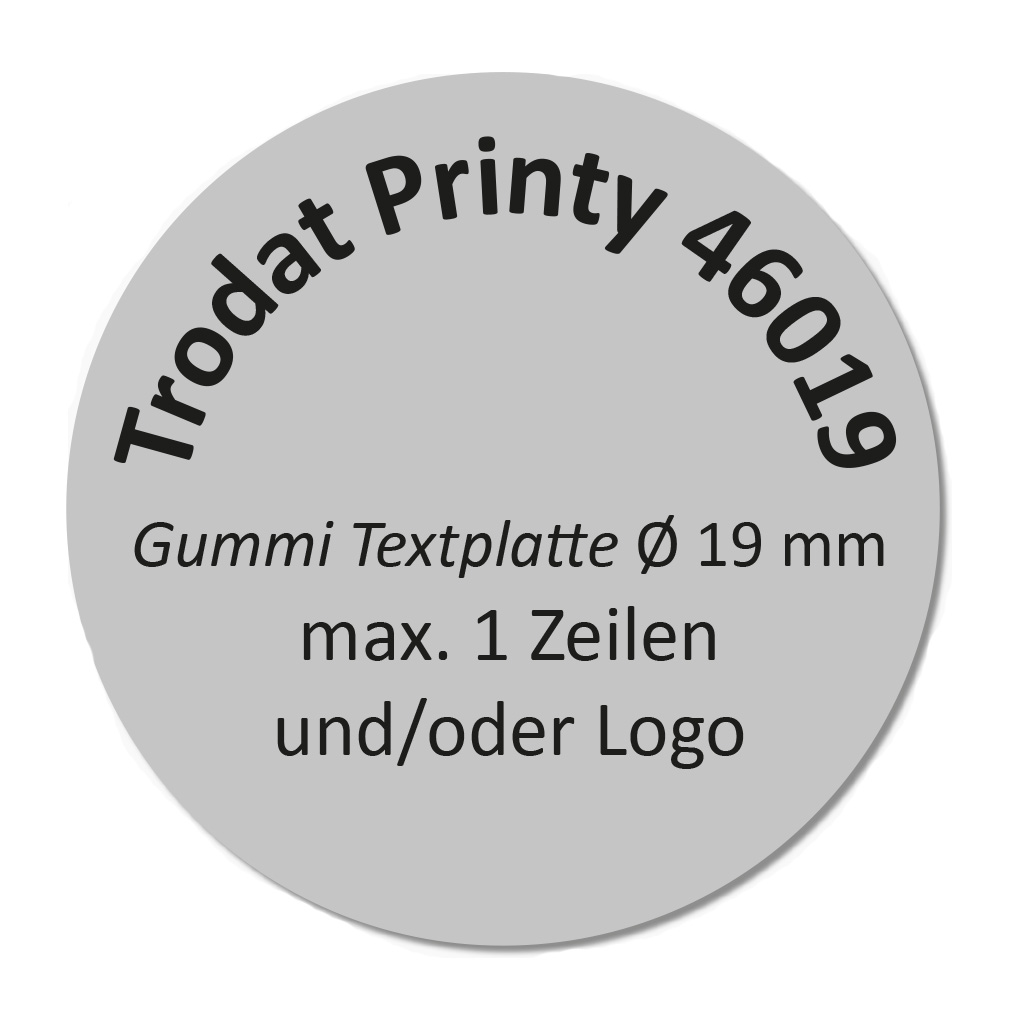 Stempelplatte für Trodat Printy 46019 mit max. Abdruckgröße Ø 19 mm.