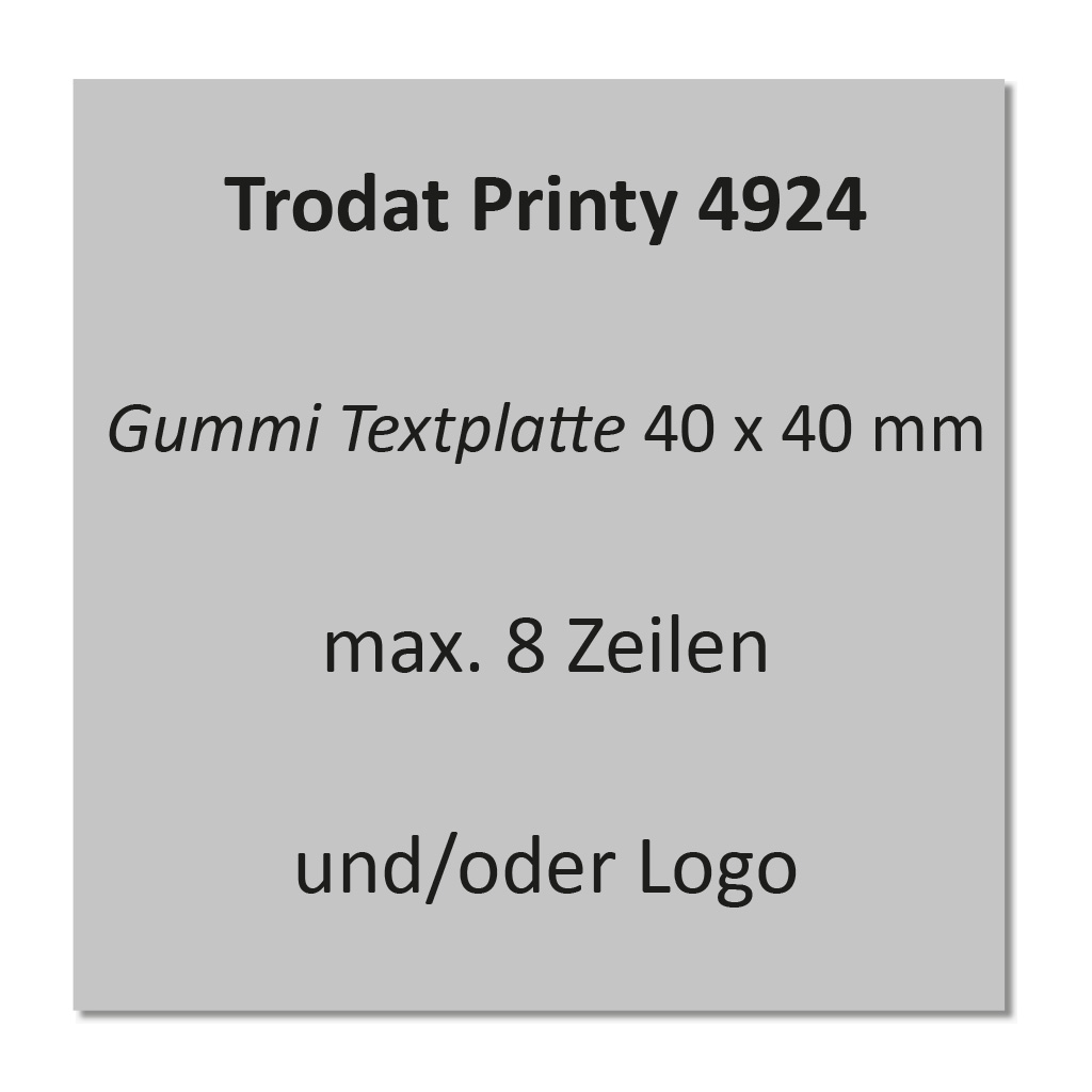 Textplatte für Trodat Printy 4924 mit max. Abdruckgröße 40x40 mm.